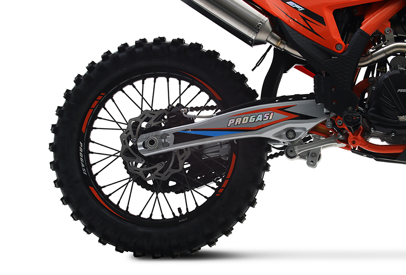Powerful brakes are a key element of safety. The Endurance 300X is fitted with additional brake reservoirs and steel-braided hoses, keeping braking stable even under extreme loads. The front features a dual-piston braking system, while the rear uses a single-piston caliper, allowing for controlled slides when needed.