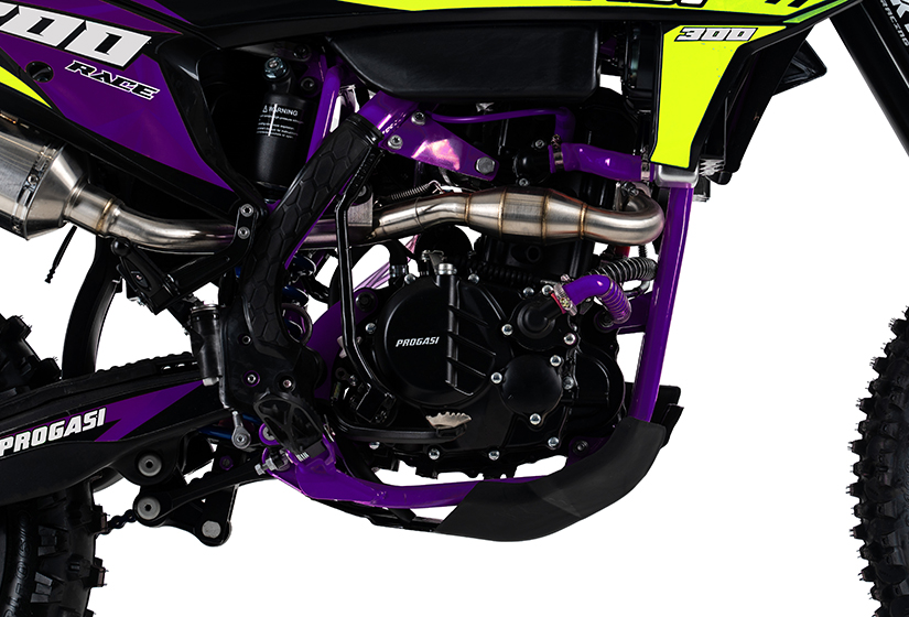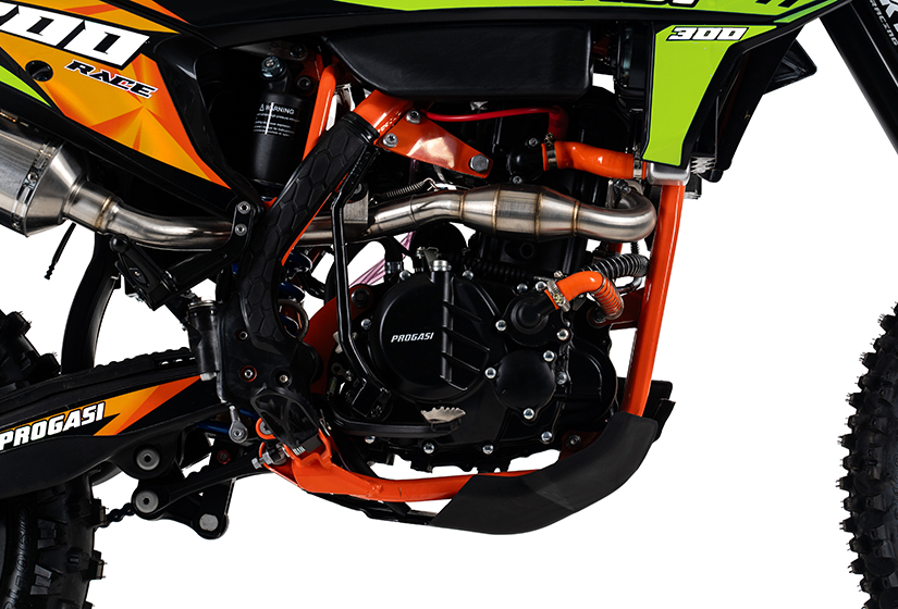 The PROGASI Race 300 frame is perfect weighing and geometry. Leveraging Gas-Gas and KTM's 2022 best practices. It is made with an emphasis on reliability and long service life. All nodes are high-quality boiled, there are additional reinforcements. A plastic frame is specially attached to the frame, which protects the motobots and the frame. The frame design allows you to service the motorcycle, adjust the valve clearances and replace the plug without removing the engine. The rear arm is made of aircraft aluminum, which gives high stiffness to twist.