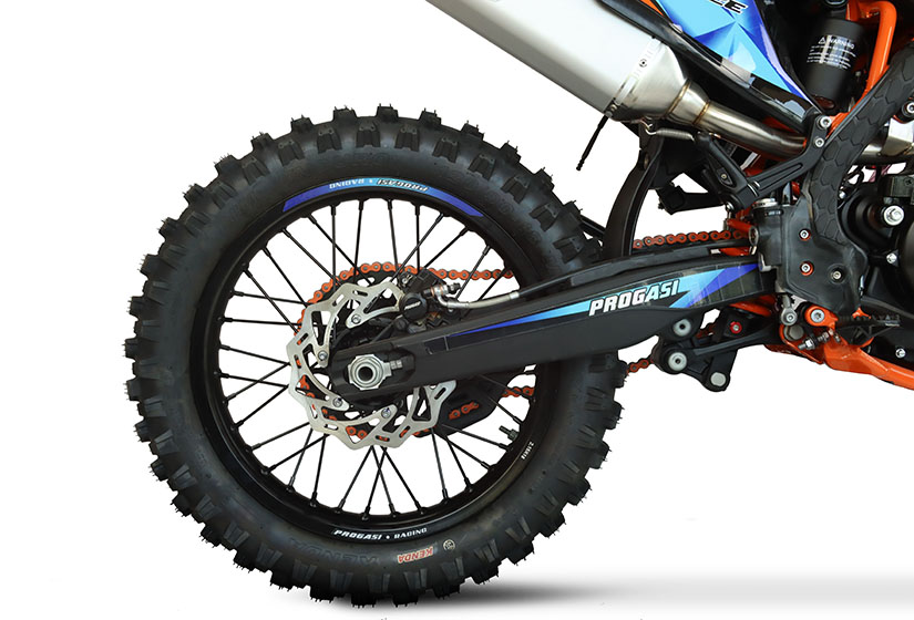 The PROGASI Race 300 frame is perfect weighing and geometry. Leveraging Gas-Gas and KTM's 2022 best practices. It is made with an emphasis on reliability and long service life. All nodes are high-quality boiled, there are additional reinforcements. A plastic frame is specially attached to the frame, which protects the motobots and the frame. The frame design allows you to service the motorcycle, adjust the valve clearances and replace the plug without removing the engine. The rear arm is made of aircraft aluminum, which gives high stiffness to twist.