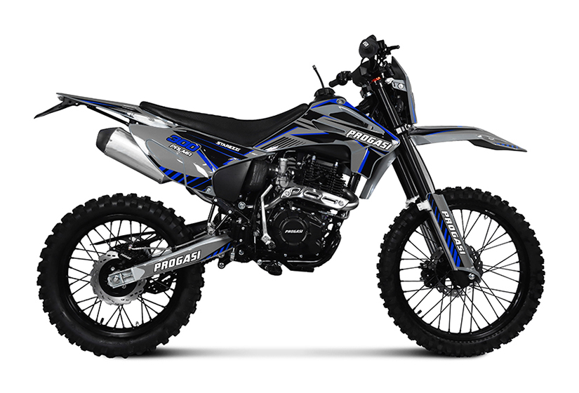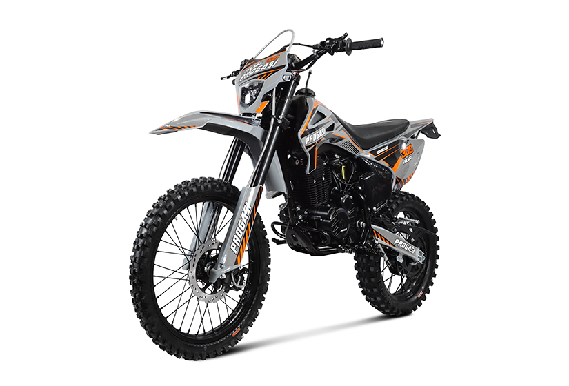 Loa frenos son el componente más importante de una motos, que afecta directamente a la seguridad del conductor, así como a la velocidad en curvas. Todos los modelos Prograsi están equipados con expansión de vaso adicional y mangueras de freno para un resultado perfecto. Un sistema de frenos de dos pistones está instalado en la parte delantera y un sistema de frenos de un solo pistón está instalado en la parte trasera.