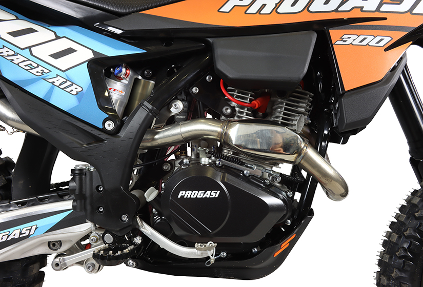 El marco rígido PROGASI Race 300 es la distribución de peso y la geometría perfecta. Utilizando las mejores prácticas de Gas-Gas y KTM 2022. Está hecho con énfasis en la confiabilidad y la larga vida útil. Todos los nodos están soldados con alta calidad, hay refuerzos adicionales. Un marco de plástico está especialmente unido al marco, que protege las botas y el marco. El diseño del marco le permite dar servicio a la motocicleta, ajustar la holgura de las válvulas y reemplazar las bujías sin quitar el motor. El péndulo está hecho de aluminio de grado aeronáutico para una alta rigidez torsional.