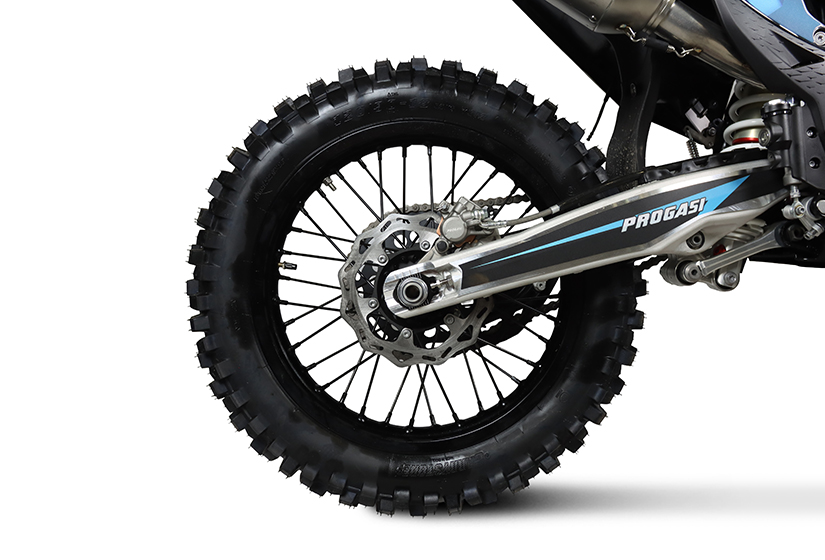 Los frenos son el componente más importante de una motocicleta, lo que afecta directamente la seguridad del conductor, así como la velocidad de las curvas. Todos los modelos PROGASI están equipados con tanques de expansión adicionales y mangueras de freno reforzadas para un resultado impecable. Se instala un sistema de frenos de dos pistones en la parte delantera y uno de un pistón en la parte trasera. De manera predecible y probada para detener la bicicleta a cualquier velocidad.