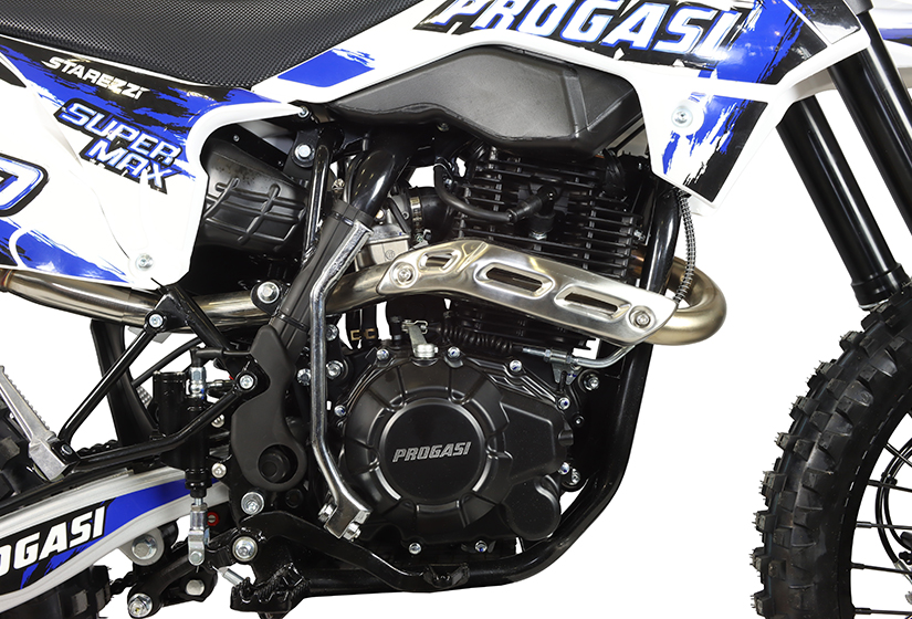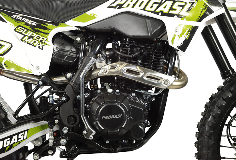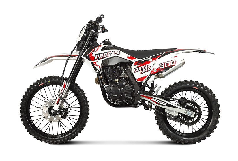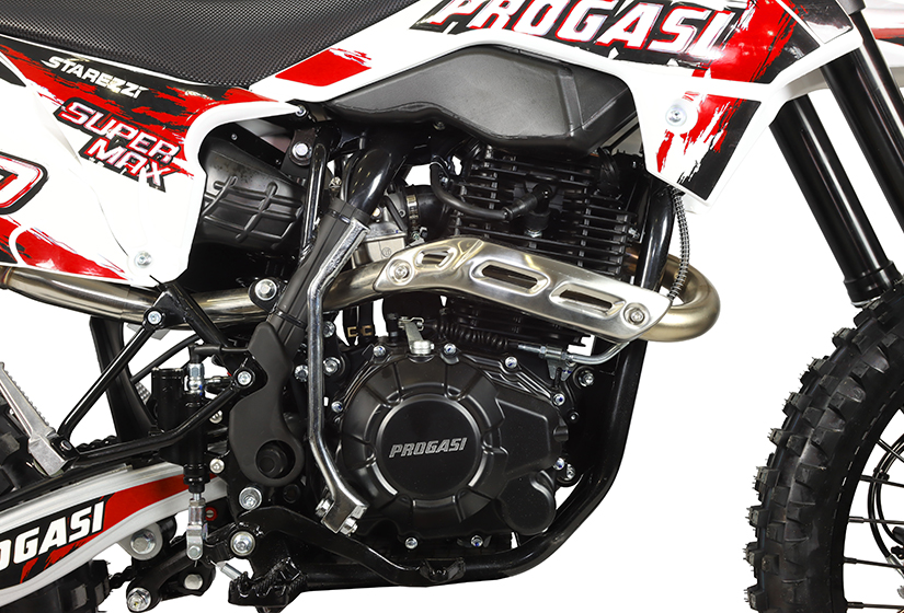 La motocicleta que ha conquistado el corazón de miles de riders regresa con una imagen renovada. Presentamos el restyling de nuestro modelo más popular: más emociones, velocidad y adrenalina que nunca. La PROGASI Super Max 300 NG está diseñada para una conducción dinámica y segura en terrenos difíciles, donde la potencia, el control y la fiabilidad son fundamentales. La PROGASI Super Max 300 NG es la elección tanto de principiantes avanzados como de riders experimentados. Un potente y fiable motor CB300-F (ZS175FMM-3A) refrigerado por aire, con transmisión de 5 velocidades, combinado con un carburador deportivo Nibbi Racing 30 y el PROGASI Exhaust System, crea un equilibrio ideal de prestaciones y entrega 25 CV.