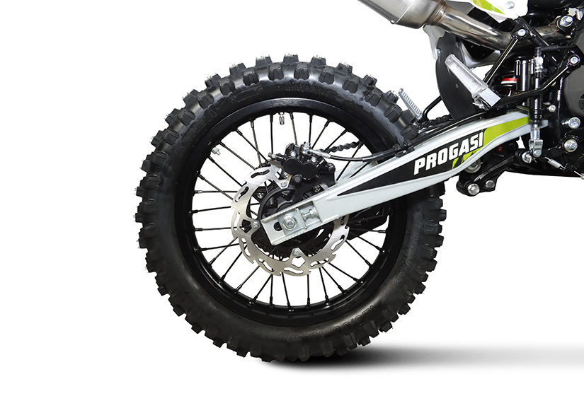 Los neumáticos Kenda han demostrado su valía durante mucho tiempo en los deportes extremos. El caucho Kenda resiste la torsión de los pernos para montar en invierno y funciona bien en la tierra. Las llantas PROGASI de aluminio reforzado están equipadas con barras de remolque que tiran del neumático hacia la llanta, evitando que gire durante la conducción.