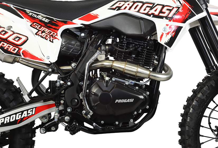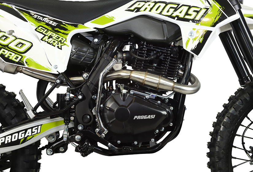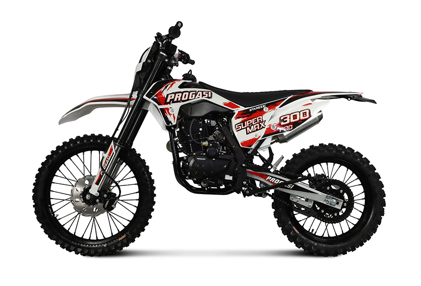 La motocicleta que ha conquistado el corazón de miles de riders regresa con una imagen renovada. Presentamos el restyling de nuestro modelo más popular: más emociones, velocidad y adrenalina que nunca. La PROGASI Super Max 300 PRO NG está diseñada para una conducción dinámica y segura en terrenos difíciles, donde la potencia, el control y la fiabilidad son fundamentales. La PROGASI Super Max 300 PRO NG es la elección tanto de principiantes avanzados como de riders experimentados. Un potente y fiable motor Zongshen PR300 refrigerado por aire, con eje de equilibrado y transmisión de 5 velocidades, combinado con un carburador deportivo Nibbi Racing Black PE30 y el PROGASI Exhaust System, crea un equilibrio ideal de prestaciones y entrega 27 CV.