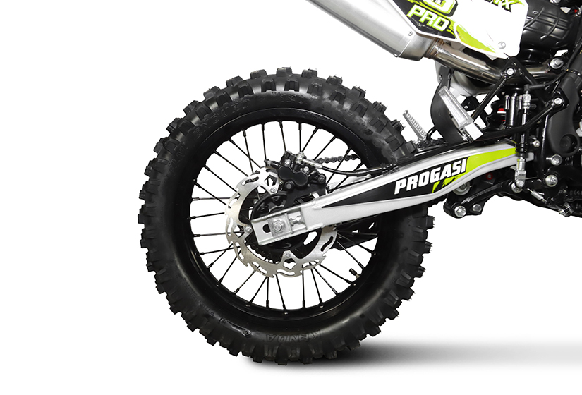 Los neumáticos Kenda han demostrado su valía durante mucho tiempo en los deportes extremos. El caucho Kenda resiste la torsión de los pernos para montar en invierno y funciona bien en la tierra. Las llantas PROGASI de aluminio reforzado están equipadas con barras de remolque que tiran del neumático hacia la llanta, evitando que gire durante la conducción.